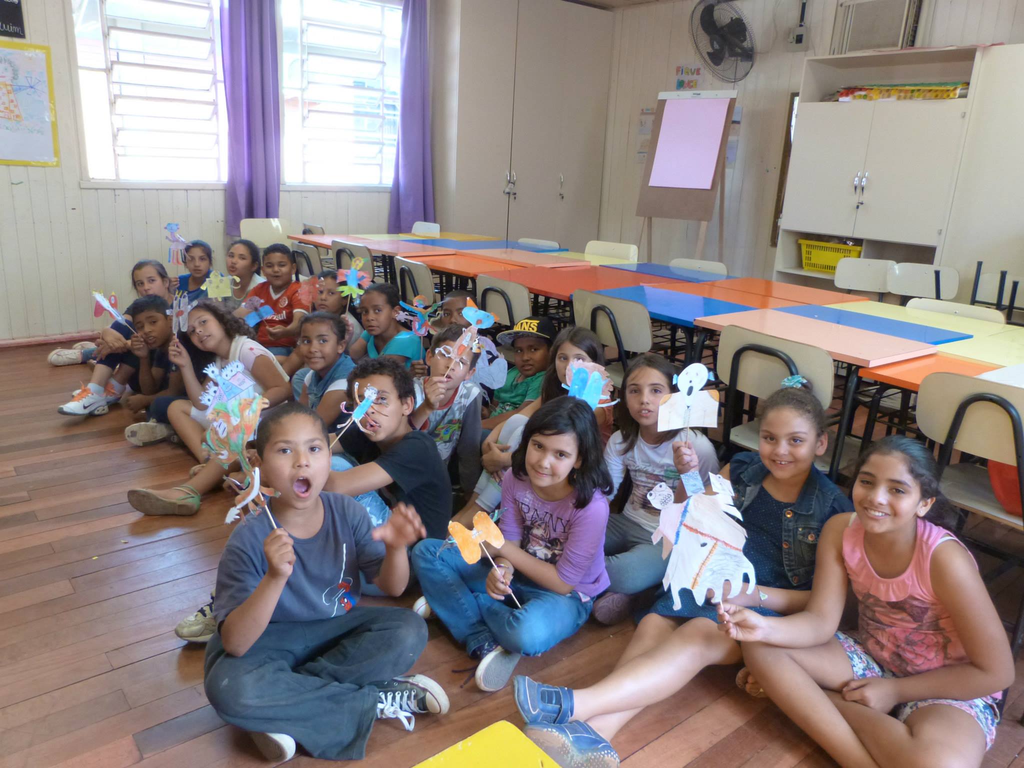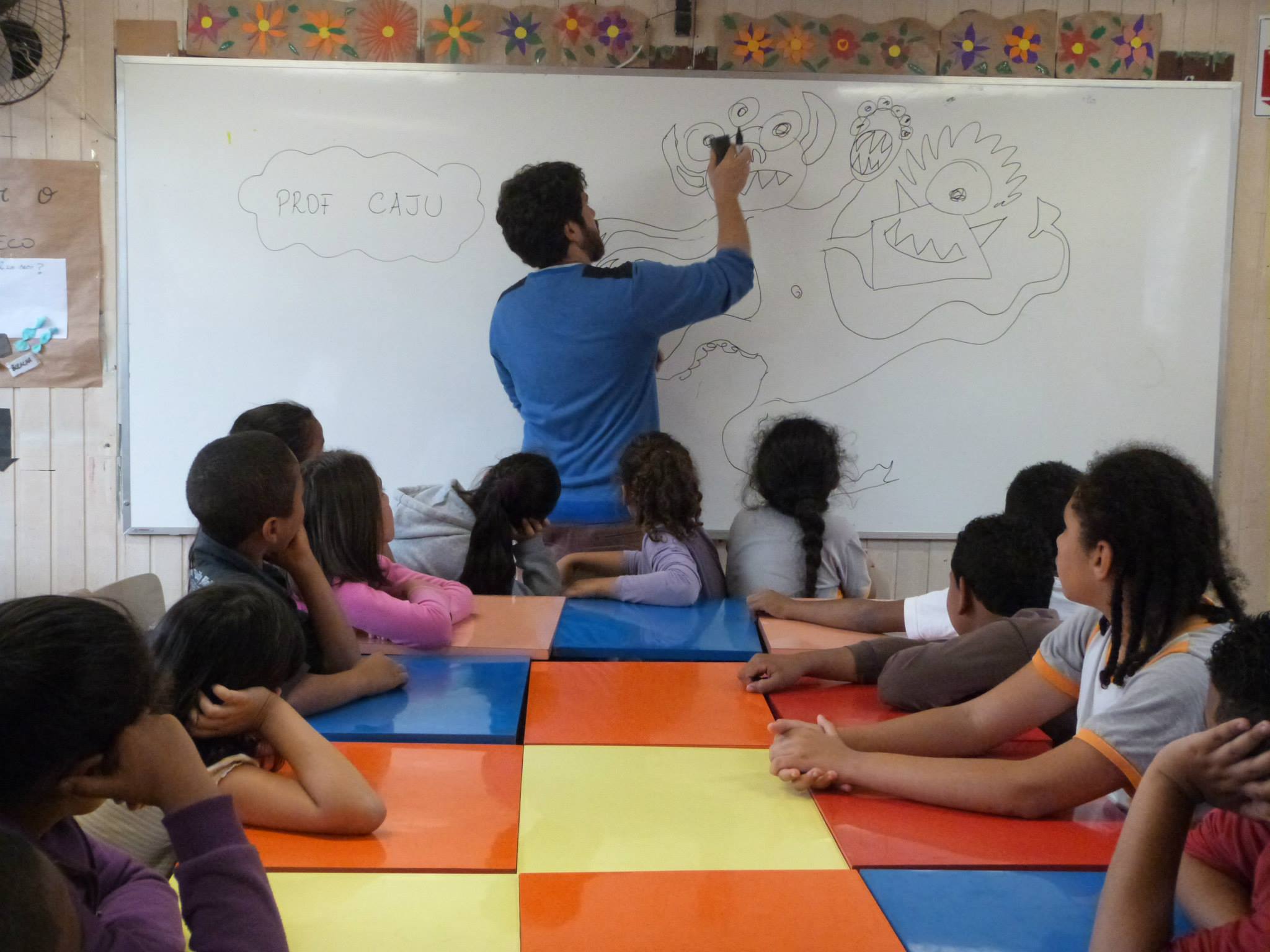 O oficineiro Caju (Carlos Eduardo Galon) apresentou uma breve história da animação, construiu brinquedos ópticos e propôs vários exercícios coletivos de desenho, explorando diversos elementos da linguagem. Durante a oficina o grupo elaborou conjuntamente o roteiro, os cenários e seus personagens, com os respectivos áudios para construção da narrativa. O vídeo “O Mundo dos Monstros”, de 7’30”, foi exibido no último dia para os alunos e logo em seguida na reunião pedagógica para os professores da escola.